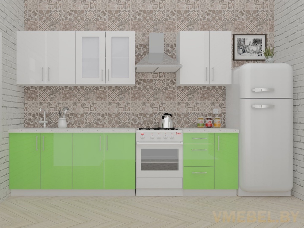 ВерсоЛайн 3-2.3 (белый/яблоко) Материал фасада Акрил Сушка Белая Фурнитура Blum Артикул: -