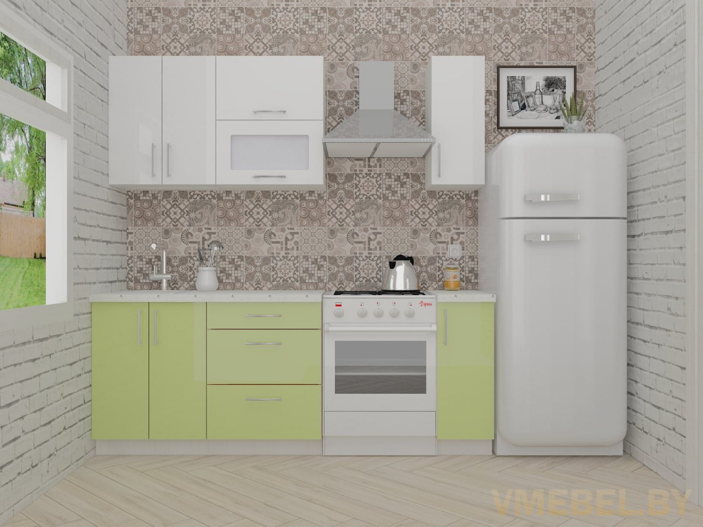 Основные Длина кухни: 150 см Конструкция кухни: линейная Материал каркаса: ЛДСП Эггер Белый базовый 18мм W908 SM Тип фасада: прямой Материал верхних фасадов: Постформинг (пластик) белый Материал нижних фасадов: Постформинг (пластик) нежно-зеленый Столешница: отдельная на каждый шкаф либо цельная на каждый участок Материал столешницы: Plattan (38 мм) Мрамор марквина белый 3028 (влагозащитная ДСП EGGER с каплеуловителем) Выдвижные ящики: 3 шт. Направляющие: шариковые направляющие полного выдвижения с доводчиками GTV Versalite Петли: Петля накладная с доводчиком GTV PRESTIGE Навесы: Крепление верхних ящиков к стене на регулируемые навесы на монтажную планку, монтажная планка в комплекте Крепление петель к боковине: на евровинтах Конструкция задней стенки: премиум (задняя стенка ящиков вставляется в фрезеруемый в паз) Цоколь: пластиковый белый H-100 Сушка: белая стандарт Ручка: Ручка UA-337 160 мм алюминий