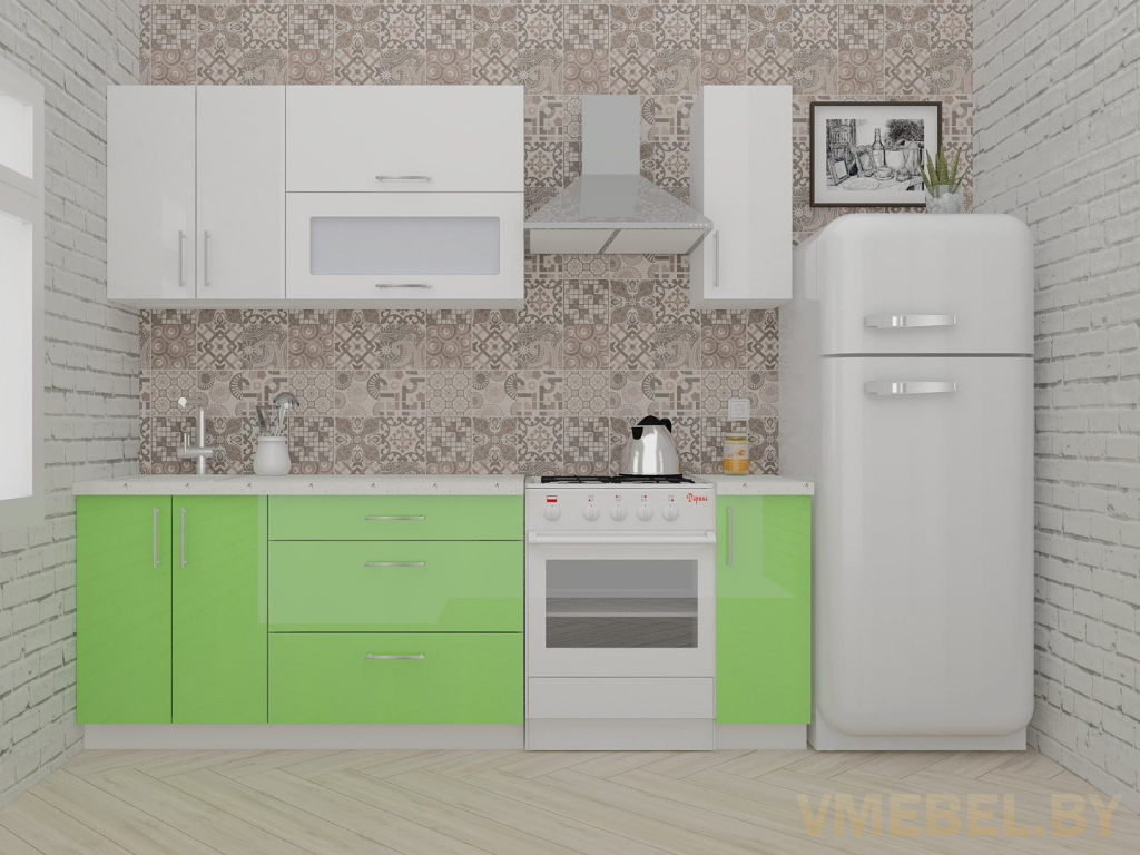Основные Длина кухни: 170 см Конструкция кухни: линейная Материал каркаса: ЛДСП Эггер Белый базовый 18мм W908 SM Тип фасада: прямой Материал верхних фасадов: Постформинг (пластик) белый Материал нижних фасадов: Постформинг (пластик) яблоко Столешница: отдельная на каждый шкаф либо цельная на каждый участок Материал столешницы: Plattan (38 мм) Мрамор марквина белый 3028 (влагозащитная ДСП EGGER с каплеуловителем) Выдвижные ящики: 3 шт. Направляющие: шариковые направляющие полного выдвижения с доводчиками GTV Versalite Петли: Петля накладная с доводчиком GTV PRESTIGE Навесы: Крепление верхних ящиков к стене на регулируемые навесы на монтажную планку, монтажная планка в комплекте Крепление петель к боковине: на евровинтах Конструкция задней стенки: премиум (задняя стенка ящиков вставляется в фрезеруемый в паз) Цоколь: пластиковый белый H-100 Сушка: белая стандарт Ручка: Ручка UA-337 160 мм алюминий