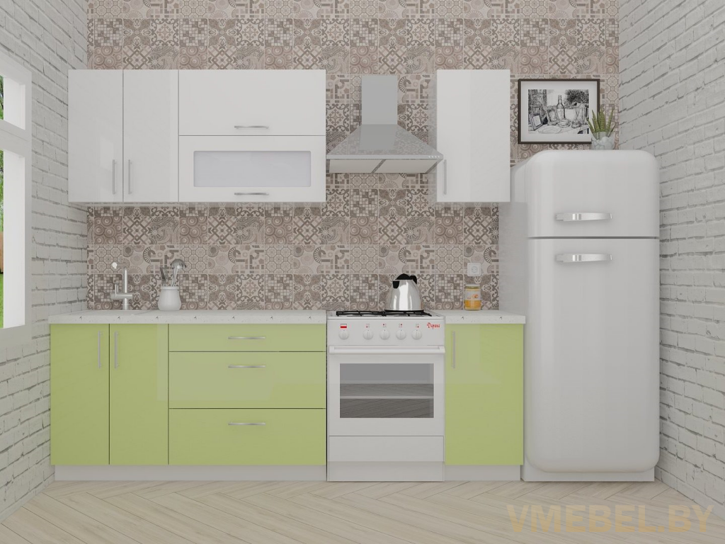 Основные Длина кухни: 180 см Конструкция кухни: линейная Материал каркаса: ЛДСП Эггер Белый базовый 18мм W908 SM Тип фасада: прямой Материал верхних фасадов: Постформинг (пластик) белый Материал нижних фасадов: Постформинг (пластик) нежно-зеленый Столешница: отдельная на каждый шкаф либо цельная на каждый участок Материал столешницы: Plattan (38 мм) Мрамор марквина белый 3028 (влагозащитная ДСП EGGER с каплеуловителем) Выдвижные ящики: 3 шт. Направляющие: шариковые направляющие полного выдвижения с доводчиками GTV Versalite Петли: Петля накладная с доводчиком GTV PRESTIGE Навесы: Крепление верхних ящиков к стене на регулируемые навесы на монтажную планку, монтажная планка в комплекте Крепление петель к боковине: на евровинтах Конструкция задней стенки: премиум (задняя стенка ящиков вставляется в фрезеруемый в паз) Цоколь: пластиковый белый H-100 Сушка: белая стандарт Ручка: Ручка UA-337 160 мм алюминий
