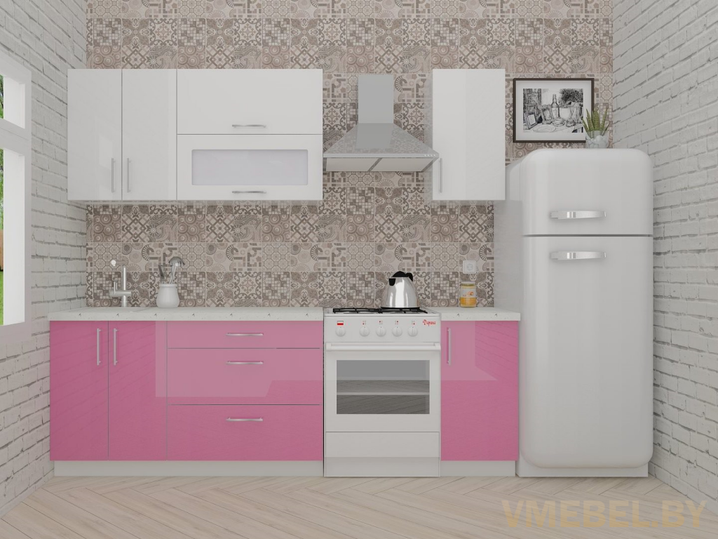 Основные Длина кухни: 180 см Конструкция кухни: линейная Материал каркаса: ЛДСП Эггер Белый базовый 18мм W908 SM Тип фасада: прямой Материал верхних фасадов: Постформинг (пластик) белый Материал нижних фасадов: Постформинг (пластик) розовый Столешница: отдельная на каждый шкаф либо цельная на каждый участок Материал столешницы: Plattan (38 мм) Мрамор марквина белый 3028 (влагозащитная ДСП EGGER с каплеуловителем) Выдвижные ящики: 3 шт. Направляющие: шариковые направляющие полного выдвижения с доводчиками GTV Versalite Петли: Петля накладная с доводчиком GTV PRESTIGE Навесы: Крепление верхних ящиков к стене на регулируемые навесы на монтажную планку, монтажная планка в комплекте Крепление петель к боковине: на евровинтах Конструкция задней стенки: премиум (задняя стенка ящиков вставляется в фрезеруемый в паз) Цоколь: пластиковый белый H-100 Сушка: белая стандарт Ручка: Ручка UA-337 160 мм алюминий