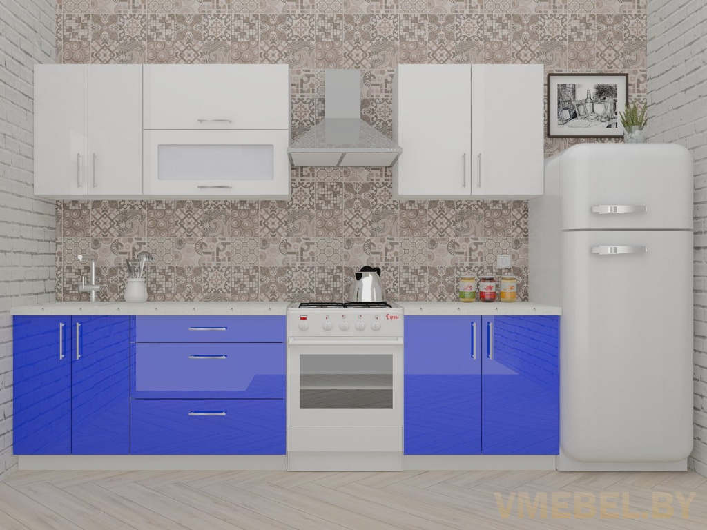 Основные Длина кухни: 220 см Конструкция кухни: линейная Материал каркаса: ЛДСП Эггер Белый базовый 18мм W908 SM Тип фасада: прямой Материал верхних фасадов: Постформинг (пластик) белый Материал нижних фасадов: Постформинг (пластик) глубокий синий Столешница: отдельная на каждый шкаф либо цельная на каждый участок Материал столешницы: Plattan (38 мм) Мрамор марквина белый 3028 (влагозащитная ДСП EGGER с каплеуловителем) Выдвижные ящики: 3 шт. Направляющие: шариковые направляющие полного выдвижения с доводчиками GTV Versalite Петли: Петля накладная с доводчиком GTV PRESTIGE Навесы: Крепление верхних ящиков к стене на регулируемые навесы на монтажную планку, монтажная планка в комплекте Крепление петель к боковине: на евровинтах Конструкция задней стенки: премиум (задняя стенка ящиков вставляется в фрезеруемый в паз) Цоколь: пластиковый белый H-100 Сушка: белая стандарт Ручка: Ручка UA-337 160 мм алюминий