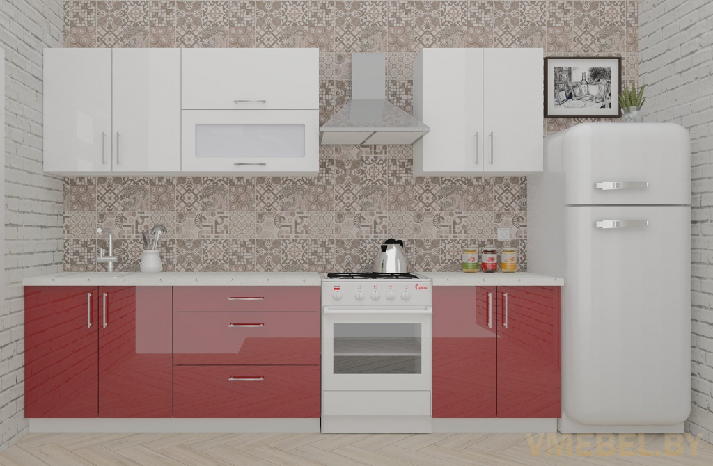 Основные Длина кухни: 230 см Конструкция кухни: линейная Материал каркаса: ЛДСП Эггер Белый базовый 18мм W908 SM Тип фасада: прямой Материал верхних фасадов: Постформинг (пластик) белый Материал нижних фасадов: Постформинг (пластик) рубиново-красный Столешница: отдельная на каждый шкаф либо цельная на каждый участок Материал столешницы: Plattan (38 мм) Мрамор марквина белый 3028 (влагозащитная ДСП EGGER с каплеуловителем) Выдвижные ящики: 3 шт. Направляющие: шариковые направляющие полного выдвижения с доводчиками GTV Versalite Петли: Петля накладная с доводчиком GTV PRESTIGE Навесы: Крепление верхних ящиков к стене на регулируемые навесы на монтажную планку, монтажная планка в комплекте Крепление петель к боковине: на евровинтах Конструкция задней стенки: премиум (задняя стенка ящиков вставляется в фрезеруемый в паз) Цоколь: пластиковый белый H-100 Сушка: белая стандарт Ручка: Ручка UA-337 160 мм алюминий