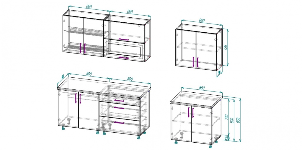 Высота нижних шкафов: 85.8 см (со столешницей)