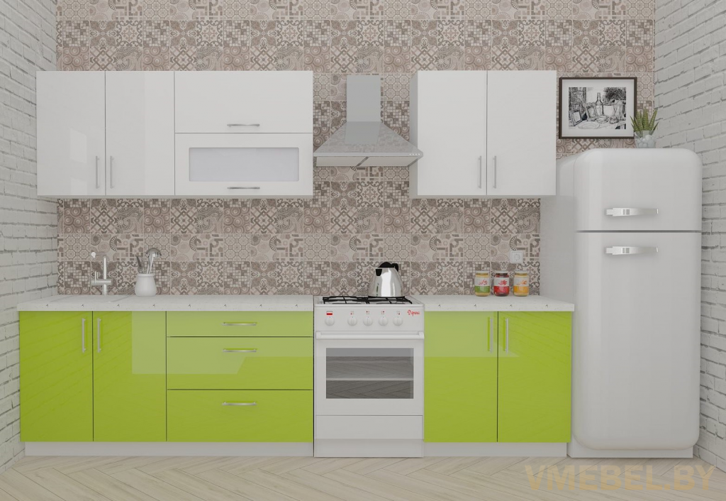 Основные Длина кухни: 240 см Конструкция кухни: линейная Материал каркаса: ЛДСП Эггер Белый базовый 18мм W908 SM Тип фасада: прямой Материал верхних фасадов: Постформинг (пластик) белый Материал нижних фасадов: Постформинг (пластик) лайм яркий Столешница: отдельная на каждый шкаф либо цельная на каждый участок Материал столешницы: Plattan (38 мм) Мрамор марквина белый 3028 (влагозащитная ДСП EGGER с каплеуловителем) Выдвижные ящики: 3 шт. Направляющие: шариковые направляющие полного выдвижения с доводчиками GTV Versalite Петли: Петля накладная с доводчиком GTV PRESTIGE Навесы: Крепление верхних ящиков к стене на регулируемые навесы на монтажную планку, монтажная планка в комплекте Крепление петель к боковине: на евровинтах Конструкция задней стенки: премиум (задняя стенка ящиков вставляется в фрезеруемый в паз) Цоколь: пластиковый белый H-100 Сушка: белая стандарт Ручка: Ручка UA-337 160 мм алюминий