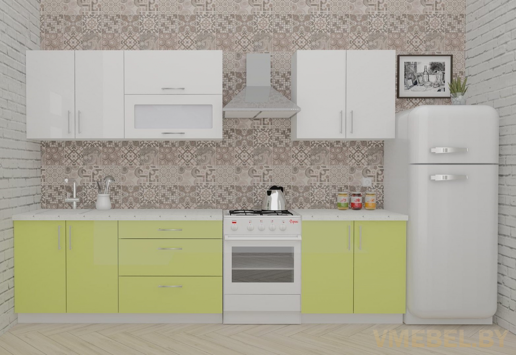 Основные Длина кухни: 240 см Конструкция кухни: линейная Материал каркаса: ЛДСП Эггер Белый базовый 18мм W908 SM Тип фасада: прямой Материал верхних фасадов: Постформинг (пластик) белый Материал нижних фасадов: Постформинг (пластик) лайм Столешница: отдельная на каждый шкаф либо цельная на каждый участок Материал столешницы: Plattan (38 мм) Мрамор марквина белый 3028 (влагозащитная ДСП EGGER с каплеуловителем) Выдвижные ящики: 3 шт. Направляющие: шариковые направляющие полного выдвижения с доводчиками GTV Versalite Петли: Петля накладная с доводчиком GTV PRESTIGE Навесы: Крепление верхних ящиков к стене на регулируемые навесы на монтажную планку, монтажная планка в комплекте Крепление петель к боковине: на евровинтах Конструкция задней стенки: премиум (задняя стенка ящиков вставляется в фрезеруемый в паз) Цоколь: пластиковый белый H-100 Сушка: белая стандарт Ручка: Ручка UA-337 160 мм алюминий