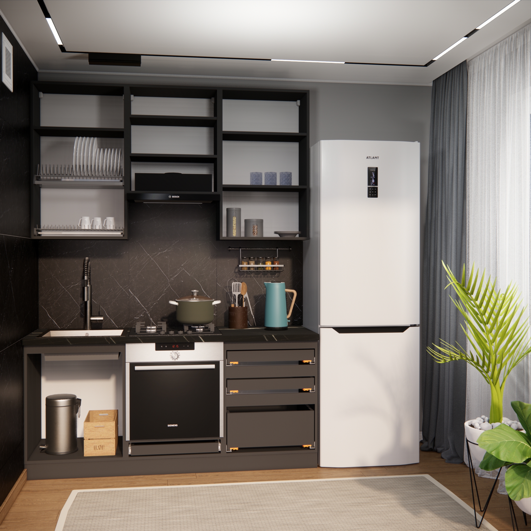 Глубина нижних шкафов: 60 см (48 см глубина по корпусу)
