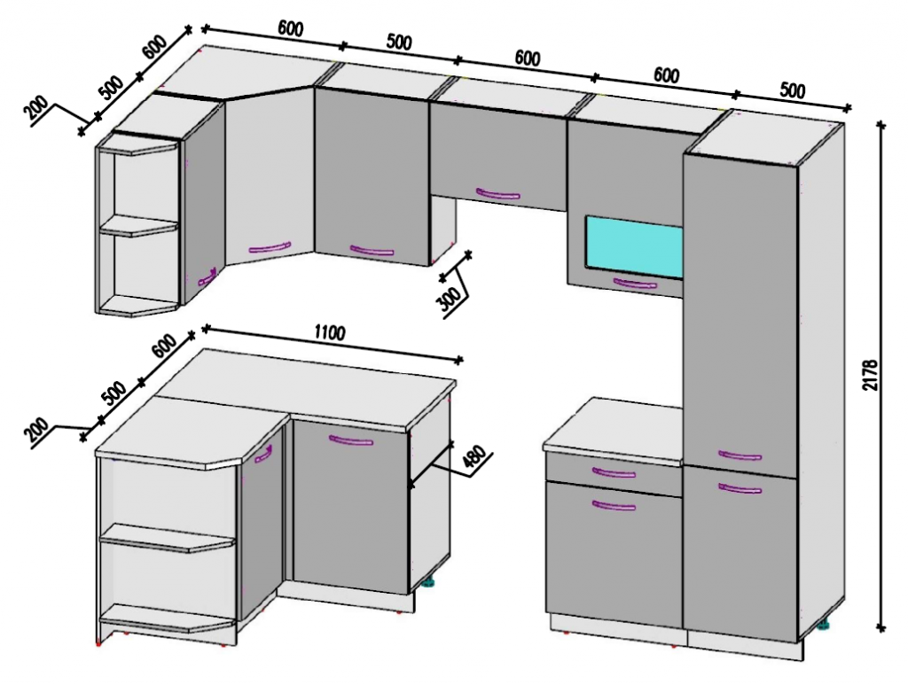 Высота нижних шкафов: 84.6 см (со столешницей)