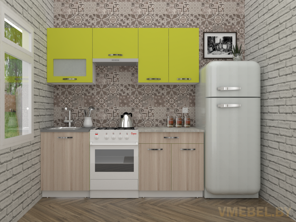 Основные Длина кухни: 200 см Конструкция кухни: линейная Материал каркаса: ЛДСП Эггер Белый базовый 18мм W908 SM Тип фасада: прямой Материал верхних фасадов: ЛДСП зеленый лайм Материал нижних фасадов: ЛДСП ясень шимо светлый Столешница: отдельная на каждый шкаф либо цельная на каждый участок Материал столешницы: Skif (26 мм) 120 Олива жемчужная Выдвижные ящики: 1 шт. Направляющие: шариковые направляющие полного выдвижения GTV (Польша) Петли: Петля накладная без доводчика GTV (Польша) Крепление петель к боковине: на евровинтах Конструкция задней стенки: внахлест Цоколь: ЛДСП белый H-100 Сушка: белая стандарт Ручка: UN 90-128 матовый хром