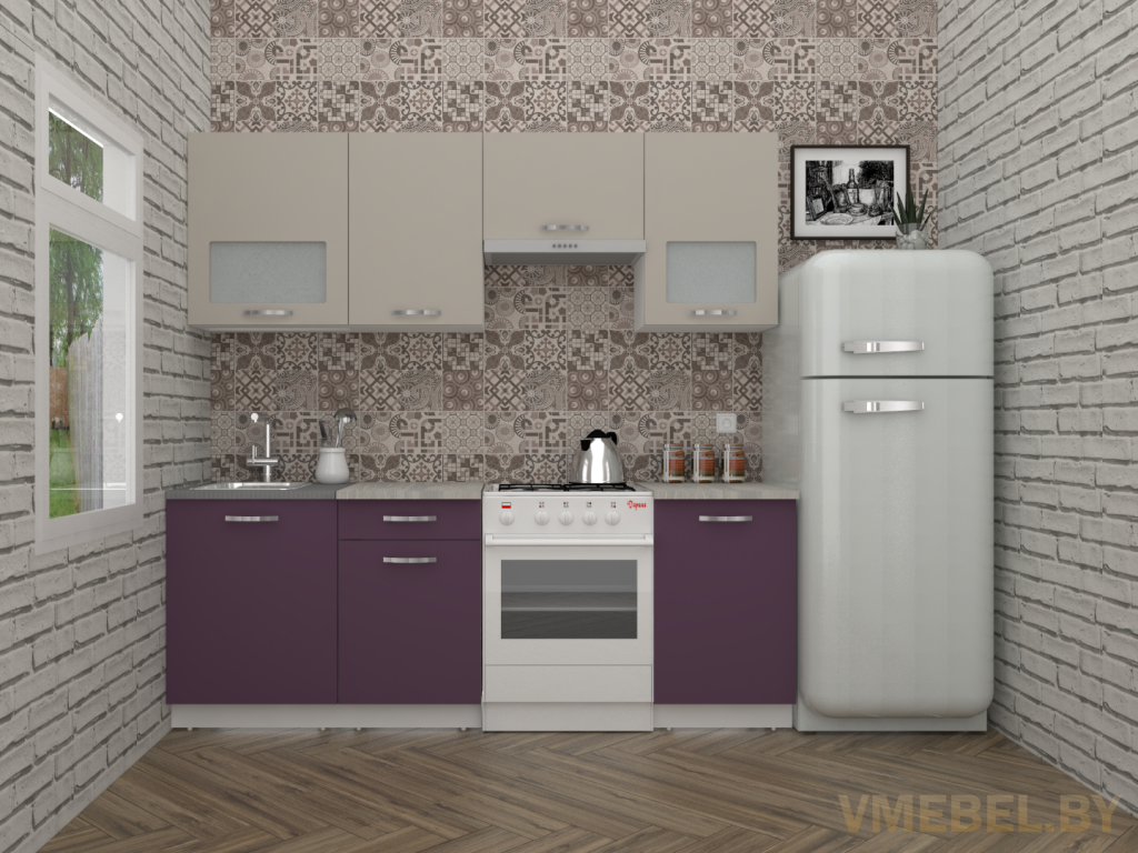 Основные Длина кухни: 220 см Конструкция кухни: линейная Материал каркаса: ЛДСП Эггер Белый базовый 18мм W908 SM Тип фасада: прямой Материал верхних фасадов: ЛДСП кашемир Материал нижних фасадов: ЛДСП виола Столешница: отдельная на каждый шкаф либо цельная на каждый участок Материал столешницы: Skif (26 мм) 120 Олива жемчужная Выдвижные ящики: 1 шт. Направляющие: шариковые направляющие полного выдвижения GTV (Польша) Петли: Петля накладная без доводчика GTV (Польша) Крепление петель к боковине: на евровинтах Конструкция задней стенки: внахлест Цоколь: ЛДСП белый H-100 Сушка: белая стандарт Ручка: UN 90-128 матовый хром