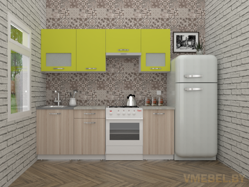 Основные Длина кухни: 220 см Конструкция кухни: линейная Материал каркаса: ЛДСП Эггер Белый базовый 18мм W908 SM Тип фасада: прямой Материал верхних фасадов: ЛДСП зеленый лайм Материал нижних фасадов: ЛДСП ясень шимо светлый Столешница: отдельная на каждый шкаф либо цельная на каждый участок Материал столешницы: Skif (26 мм) 120 Олива жемчужная Выдвижные ящики: 1 шт. Направляющие: шариковые направляющие полного выдвижения GTV (Польша) Петли: Петля накладная без доводчика GTV (Польша) Крепление петель к боковине: на евровинтах Конструкция задней стенки: внахлест Цоколь: ЛДСП белый H-100 Сушка: белая стандарт Ручка: UN 90-128 матовый хром