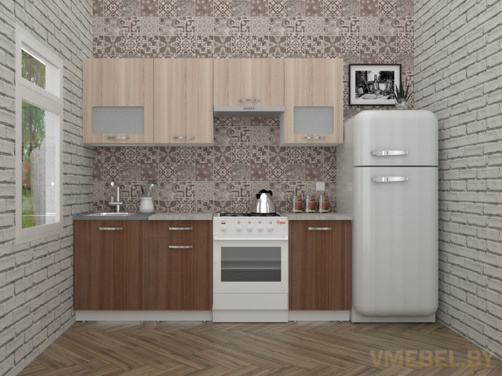 Основные Длина кухни: 220 см Конструкция кухни: линейная Материал каркаса: ЛДСП Эггер Белый базовый 18мм W908 SM Тип фасада: прямой Материал верхних фасадов: ЛДСП ясень шимо светлый Материал нижних фасадов: ЛДСП ясень шимо темный Столешница: отдельная на каждый шкаф либо цельная на каждый участок Материал столешницы: Skif (26 мм) 120 Олива жемчужная Выдвижные ящики: 1 шт. Направляющие: шариковые направляющие полного выдвижения GTV (Польша) Петли: Петля накладная без доводчика GTV (Польша) Крепление петель к боковине: на евровинтах Конструкция задней стенки: внахлест Цоколь: ЛДСП белый H-100 Сушка: белая стандарт Ручка: UN 90-128 матовый хром