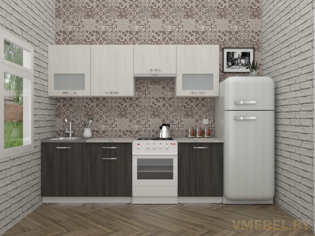 Основные Длина кухни: 240 см Конструкция кухни: линейная Материал каркаса: ЛДСП Эггер Белый базовый 18мм W908 SM Тип фасада: прямой Материал верхних фасадов: ЛДСП северное дерево светлый Материал нижних фасадов: ЛДСП северное дерево темный Столешница: отдельная на каждый шкаф либо цельная на каждый участок Материал столешницы: Skif (26 мм) 120 Олива жемчужная Выдвижные ящики: 1 шт. Направляющие: шариковые направляющие полного выдвижения GTV (Польша) Петли: Петля накладная без доводчика GTV (Польша) Крепление петель к боковине: на евровинтах Конструкция задней стенки: внахлест Цоколь: ЛДСП белый H-100 Сушка: белая стандарт Ручка: UN 90-128 матовый хром