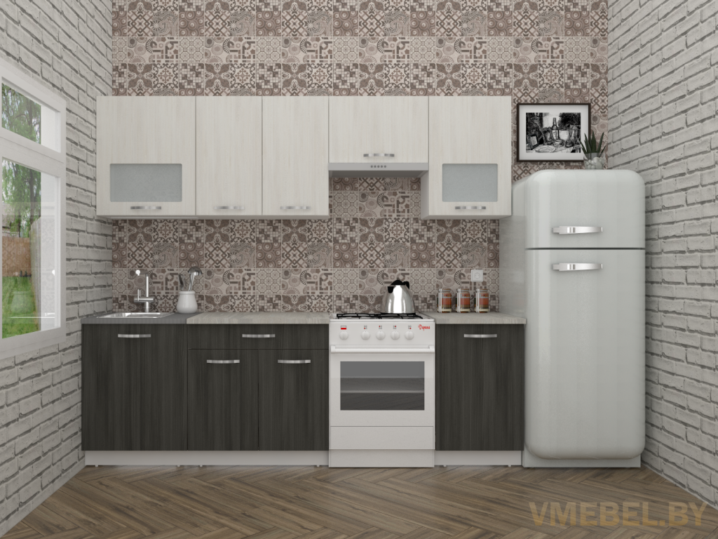 Основные Длина кухни: 250 см Конструкция кухни: линейная Материал каркаса: ЛДСП Эггер Белый базовый 18мм W908 SM Тип фасада: прямой Материал верхних фасадов: ЛДСП северное дерево светлый Материал нижних фасадов: ЛДСП северное дерево темный Столешница: отдельная на каждый шкаф либо цельная на каждый участок Материал столешницы: Skif (26 мм) 120 Олива жемчужная Выдвижные ящики: 1 шт. Направляющие: шариковые направляющие полного выдвижения GTV (Польша) Петли: Петля накладная без доводчика GTV (Польша) Крепление петель к боковине: на евровинтах Конструкция задней стенки: внахлест Цоколь: ЛДСП белый H-100 Сушка: белая стандарт Ручка: UN 90-128 матовый хром