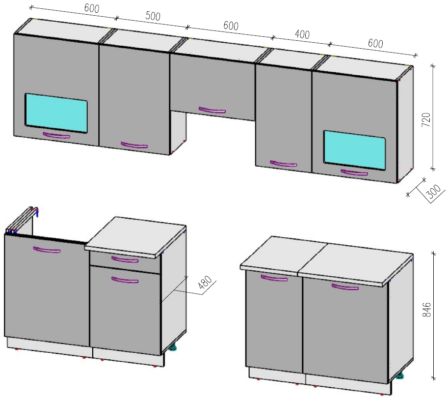 Высота нижних шкафов: 84.6 см (со столешницей)