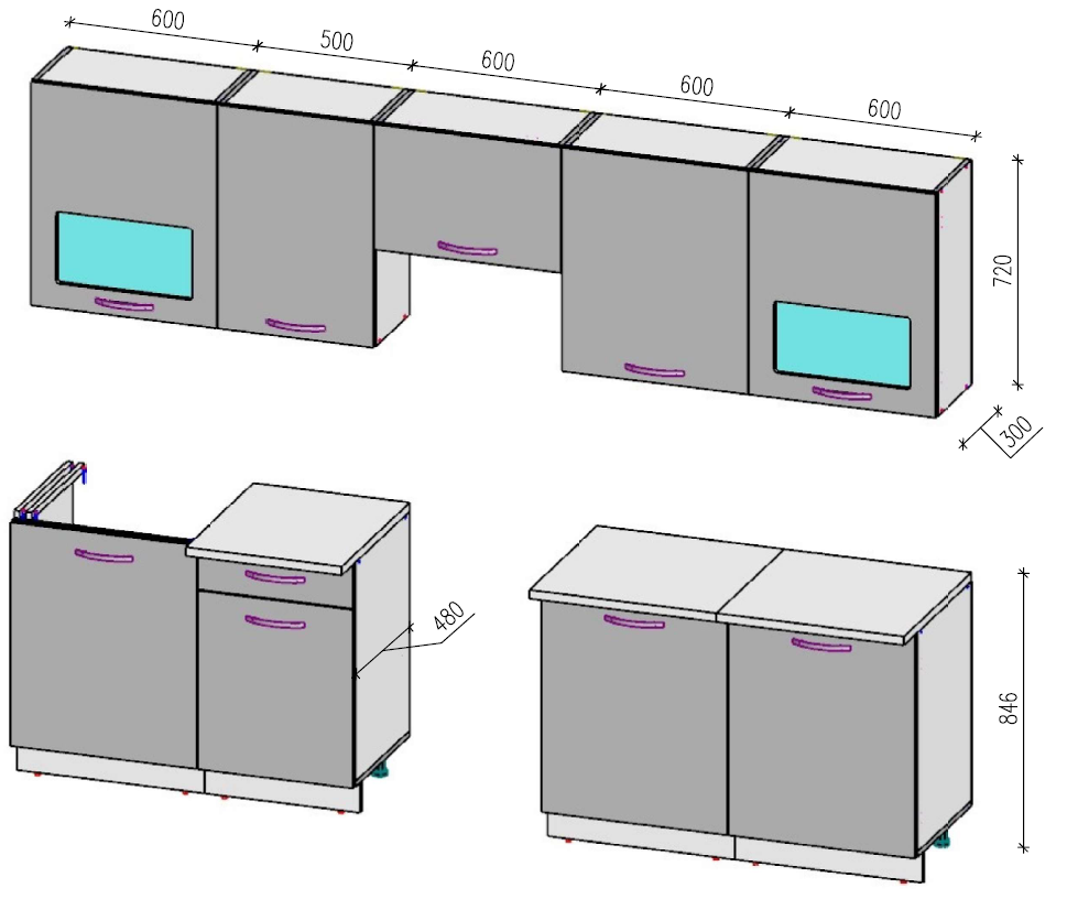 Высота нижних шкафов: 84.6 см (со столешницей)