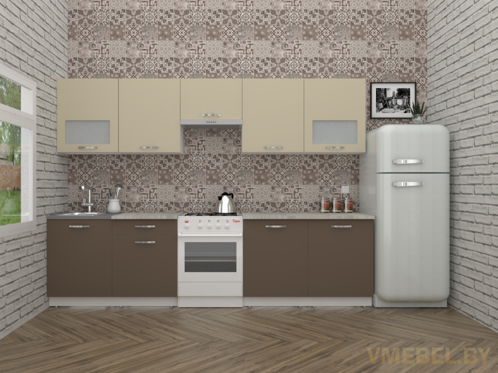 Основные Длина кухни: 300 см Конструкция кухни: линейная Материал каркаса: ЛДСП Эггер Белый базовый 18мм W908 SM Тип фасада: прямой Материал верхних фасадов: ЛДСП бежевый Материал нижних фасадов: ЛДСП латте Столешница: отдельная на каждый шкаф либо цельная на каждый участок Материал столешницы: Skif (26 мм) 120 Олива жемчужная Выдвижные ящики: 1 шт. Направляющие: шариковые направляющие полного выдвижения GTV (Польша) Петли: Петля накладная без доводчика GTV (Польша) Крепление петель к боковине: на евровинтах Конструкция задней стенки: внахлест Цоколь: ЛДСП белый H-100 Сушка: белая стандарт Ручка: UN 90-128 матовый хром