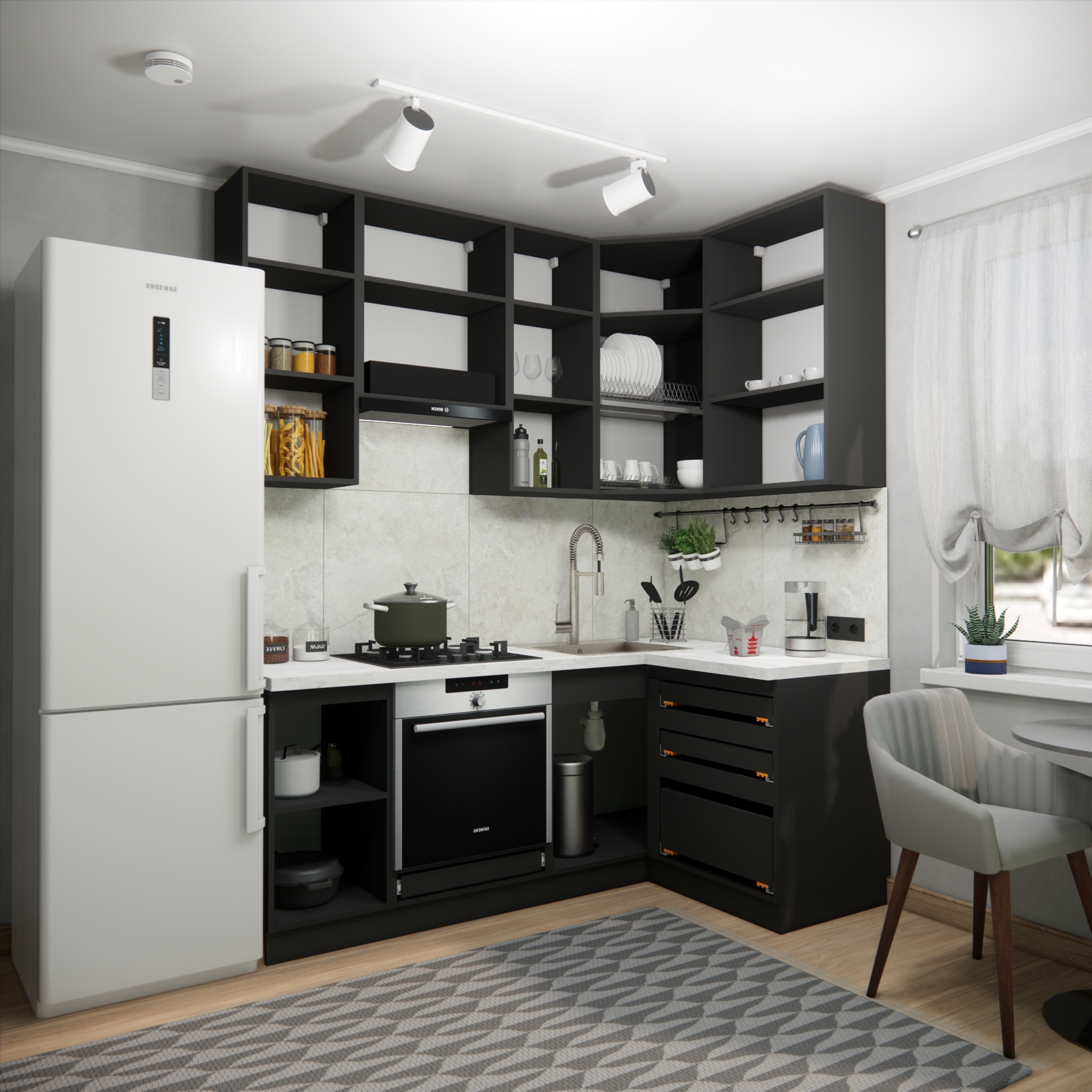 Глубина нижних шкафов: 60 см (48 см глубина по корпусу)