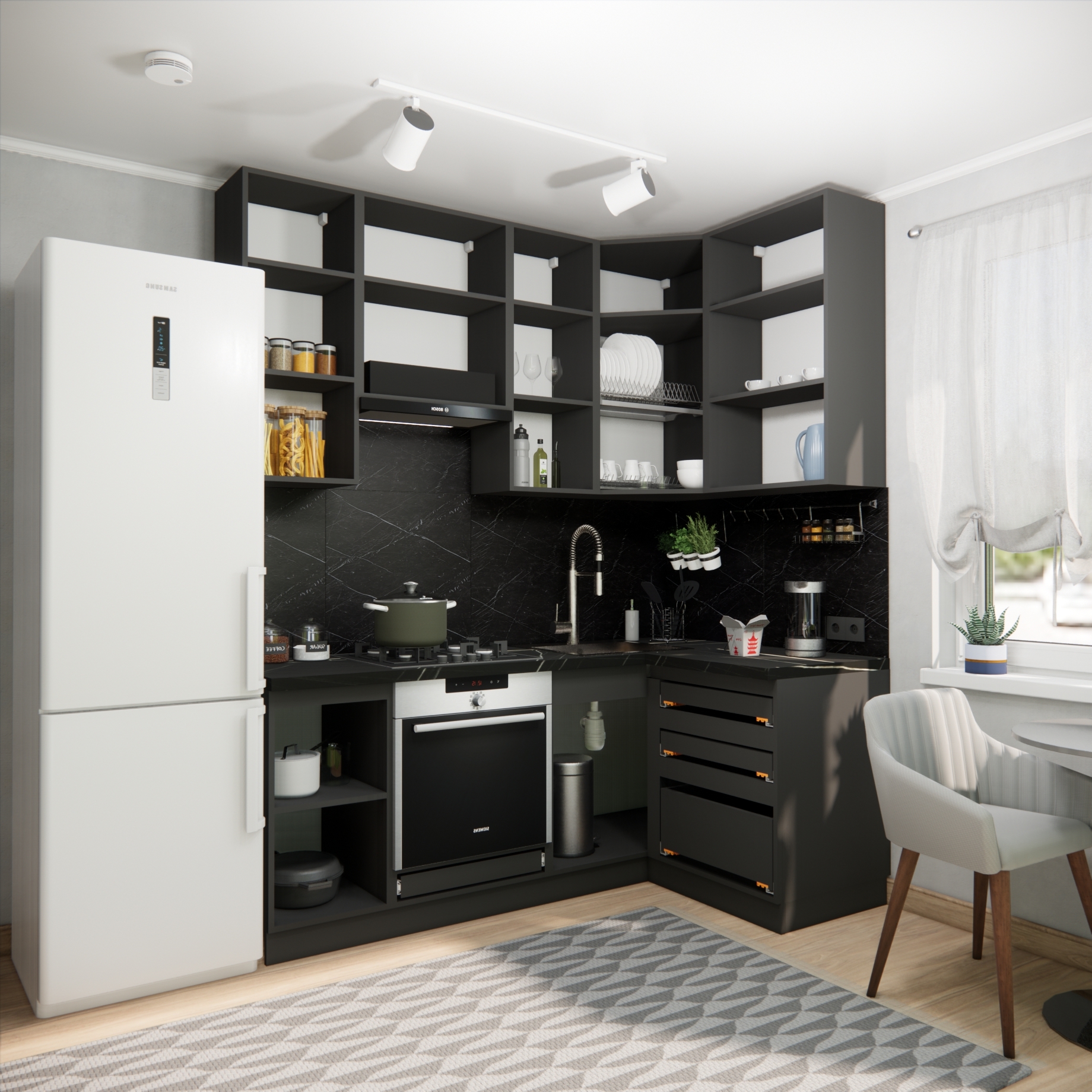 Глубина нижних шкафов: 60 см (48 см глубина по корпусу)