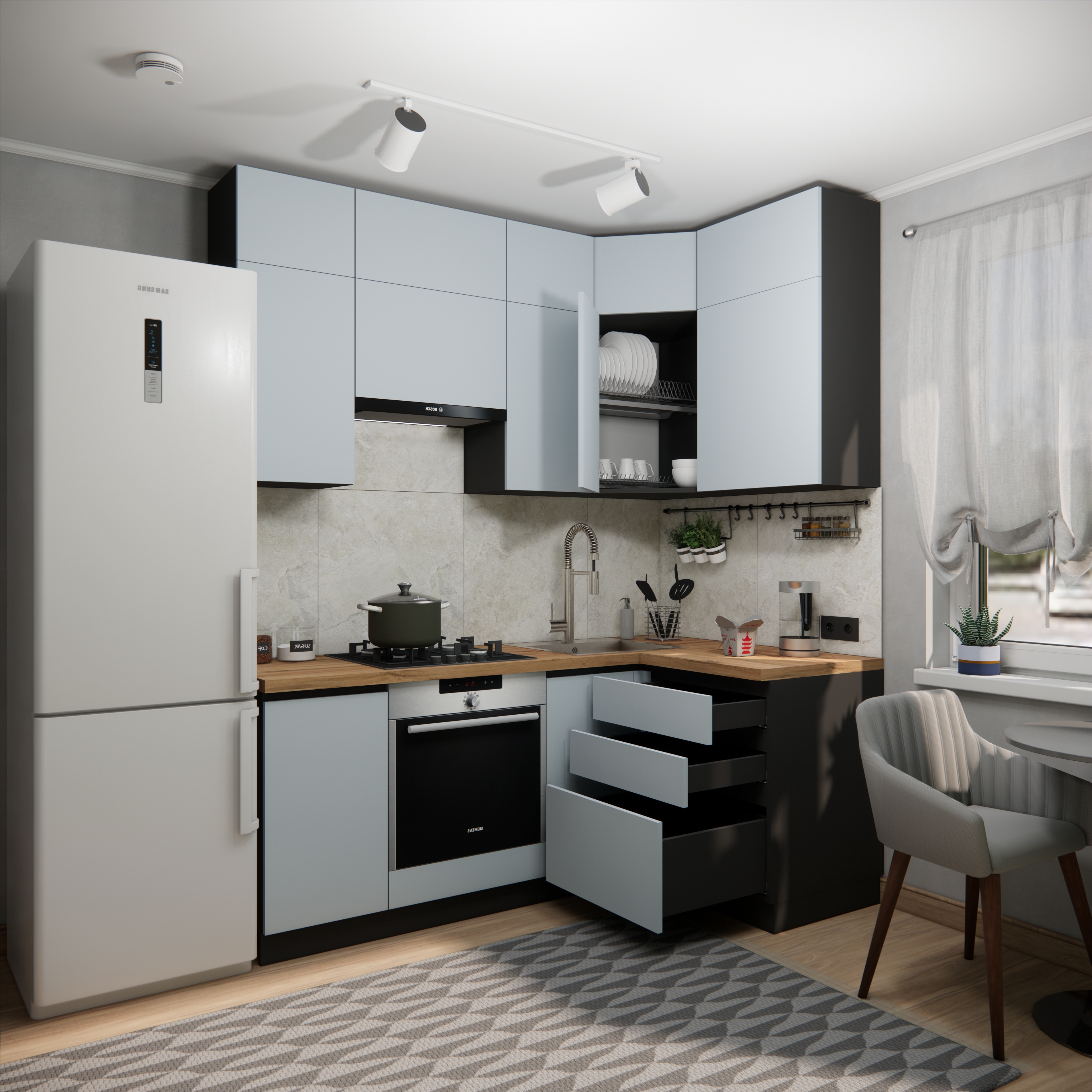 Цвет нижних фасадов: сумеречный голубой