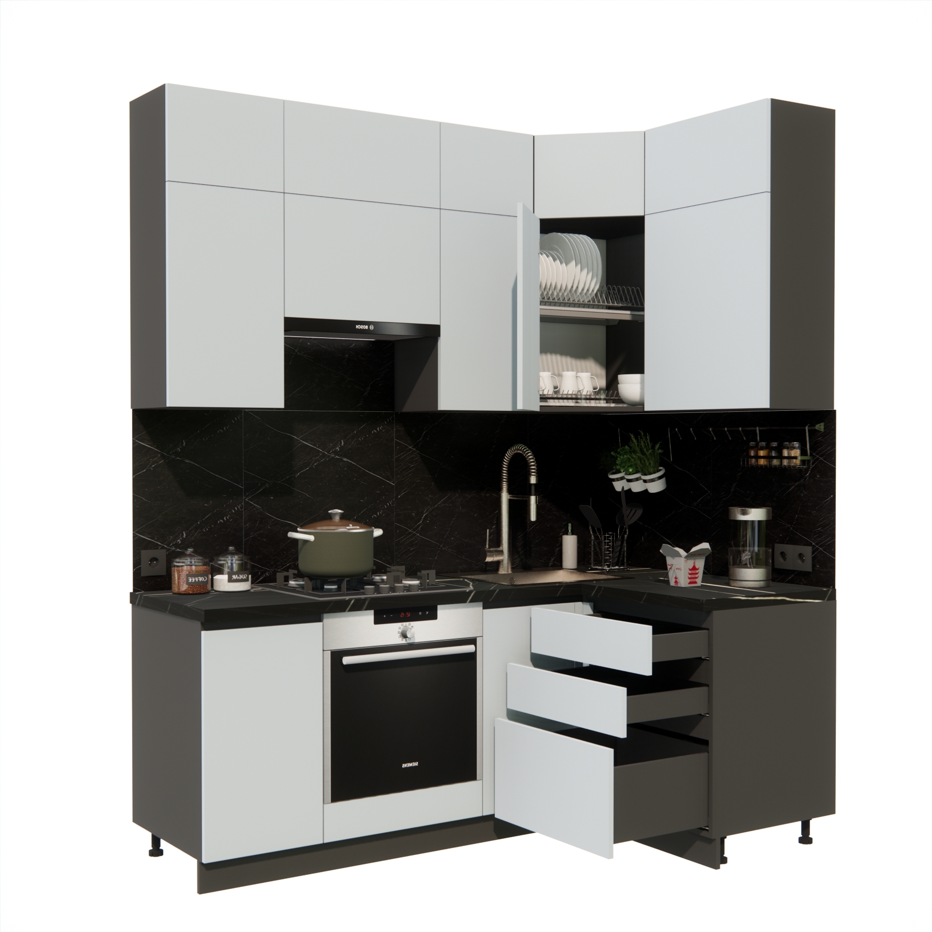 Глубина нижних шкафов: 60 см (48 см глубина по корпусу)