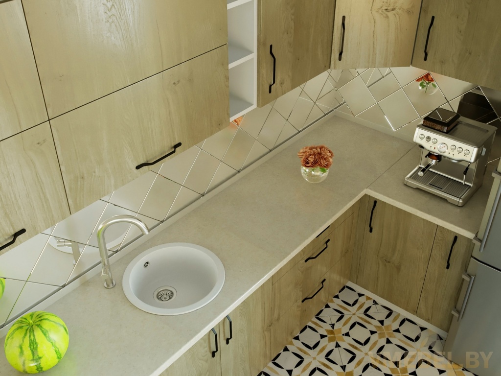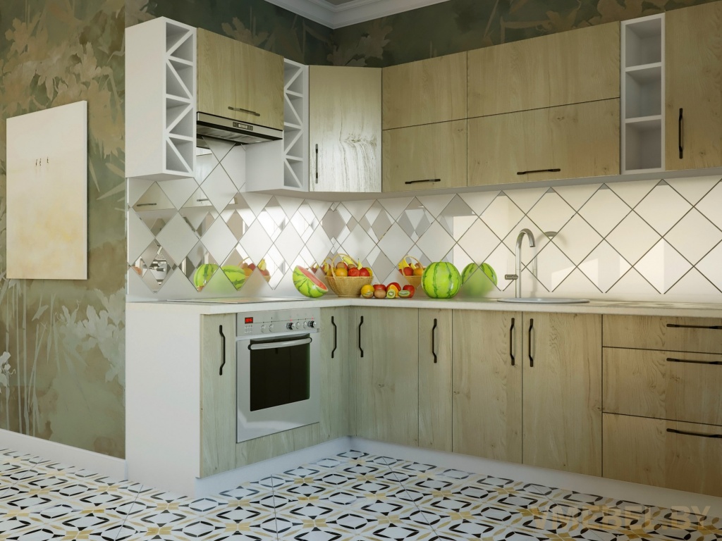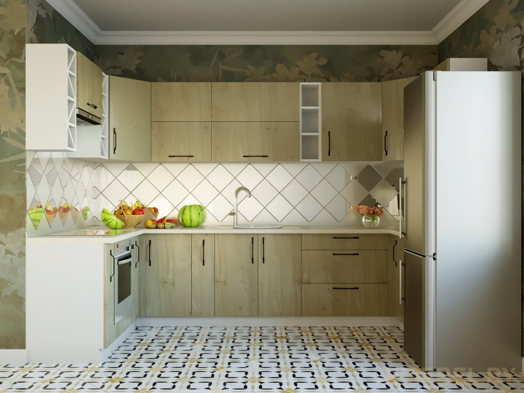 Основные Длина кухни: 160см+340см+120см Конструкция кухни: угловая Материал каркаса: ЛДСП Эггер Белый базовый 18мм W908 SM Тип фасада: прямой Материал верхних фасадов: Дуб кендал натуральный Материал нижних фасадов: Дуб кендал натуральный Столешница: отдельная на каждый шкаф либо цельная на каждый участок Материал столешницы: Plattan (38 мм) 4018 Галактика (влагозащитная ДСП EGGER с каплеуловителем)