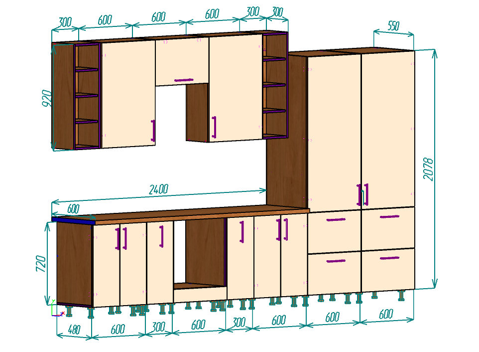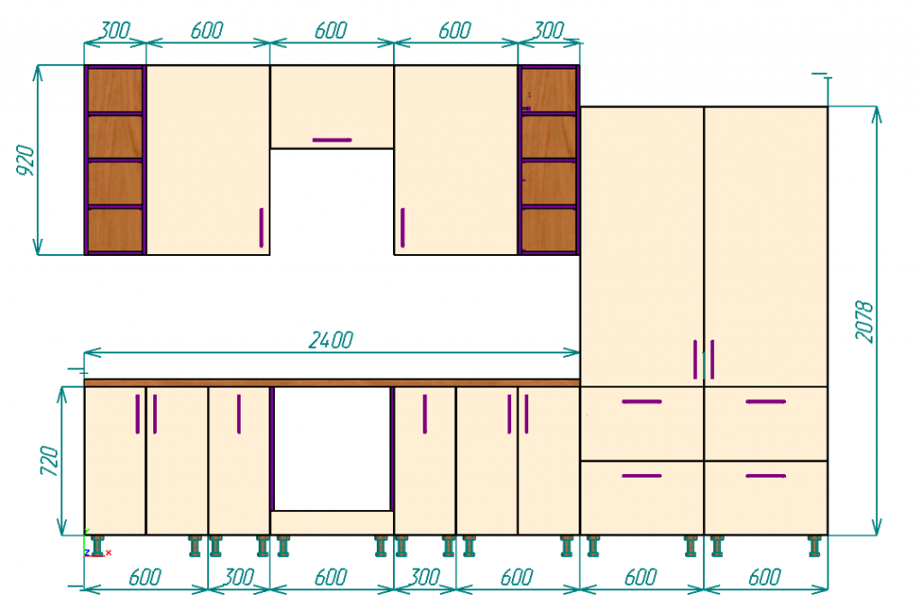 Высота нижних шкафов: 85.8 см (со столешницей)