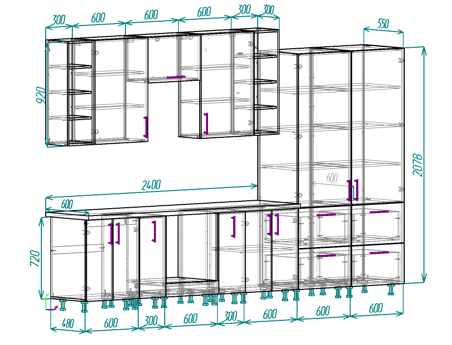 Доукомплектовать системной выдвижения Tandembox Antaro, петлями с доводчиком Blum, сушкой хром, а также сделать выбор ручек, см. полный каталог по ссылке