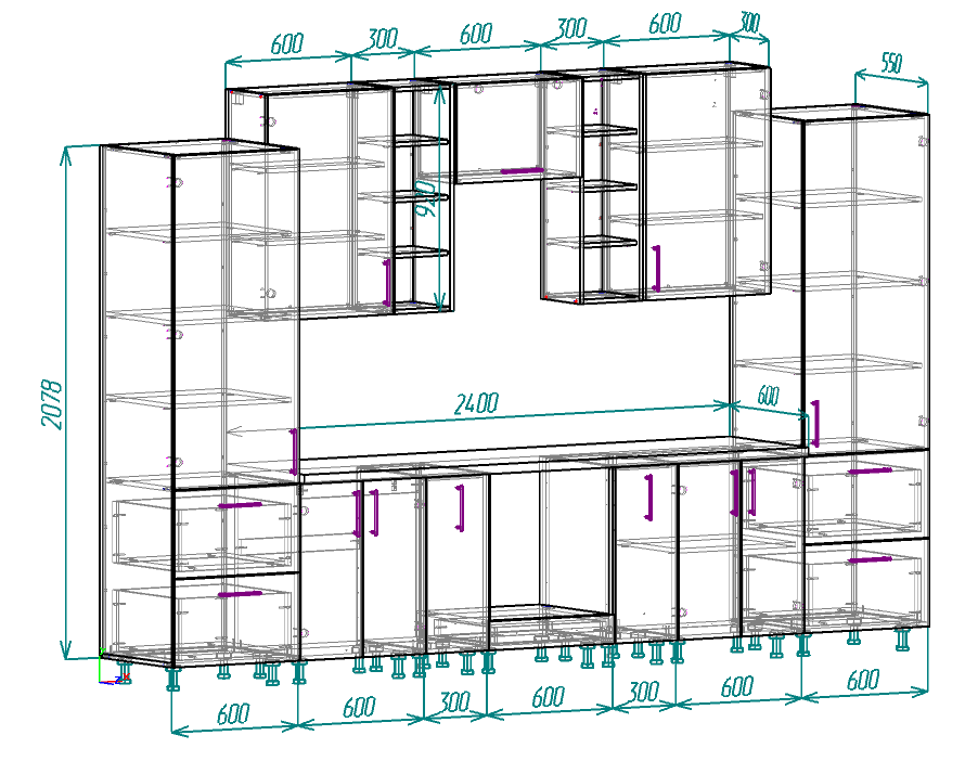 Доукомплектовать системной выдвижения Tandembox Antaro, петлями с доводчиком Blum, сушкой хром, а также сделать выбор ручек, см. полный каталог по ссылке