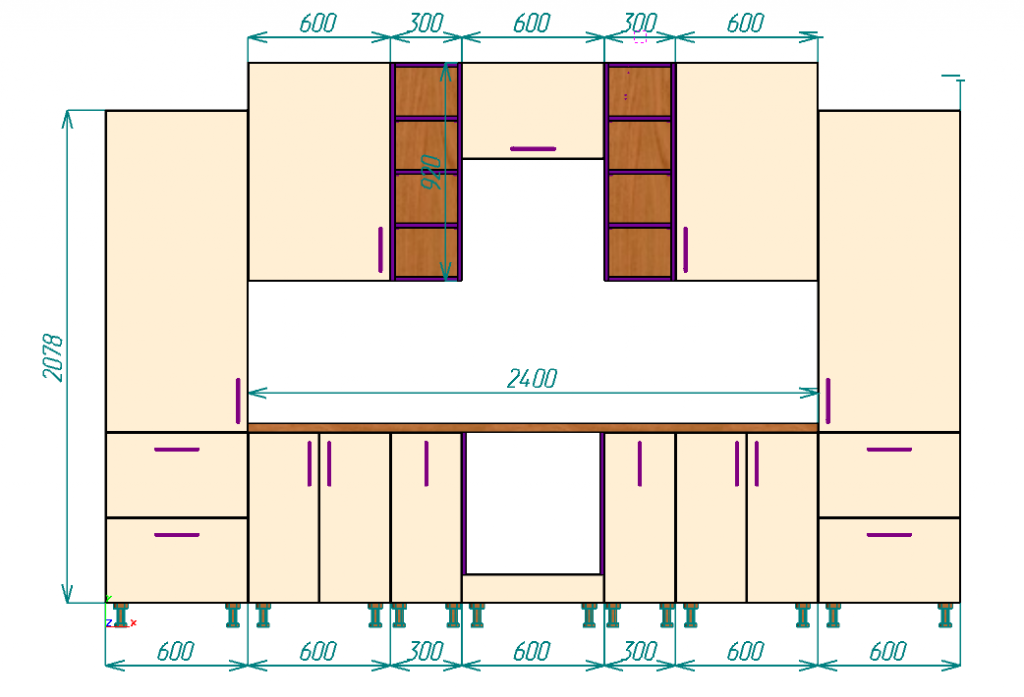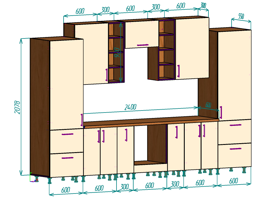 Высота нижних шкафов: 85.8 см (со столешницей)