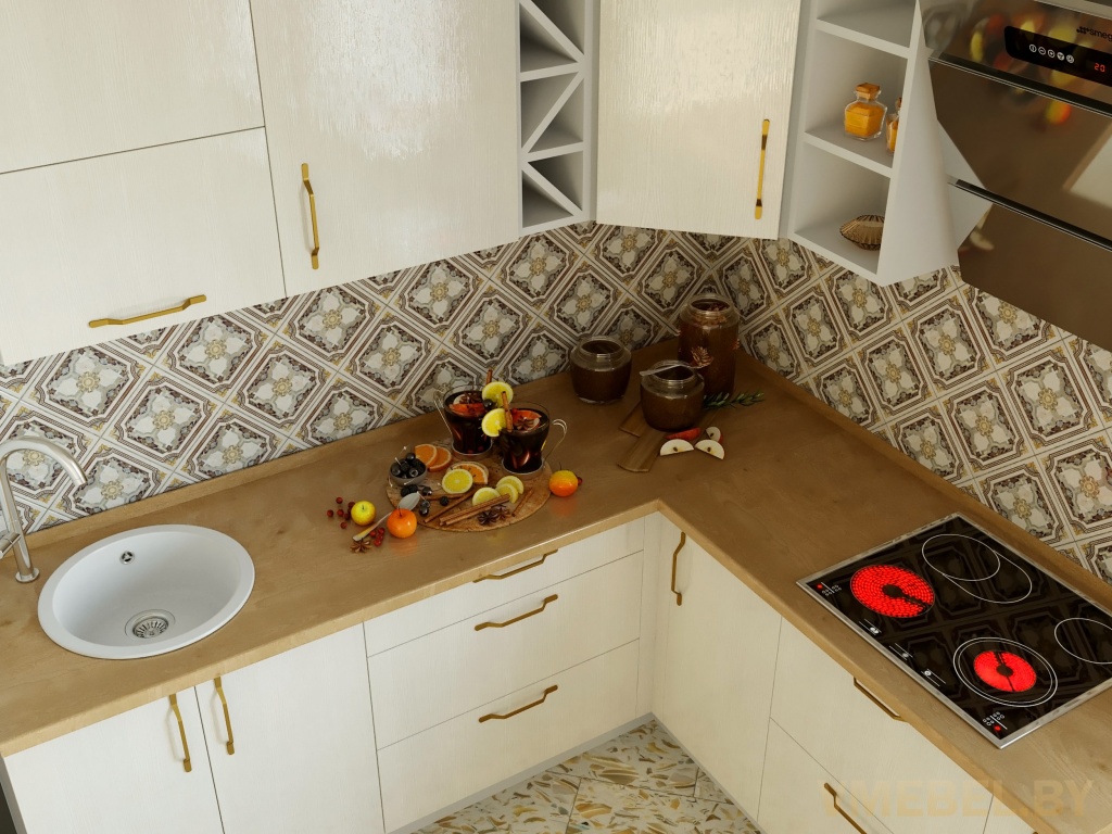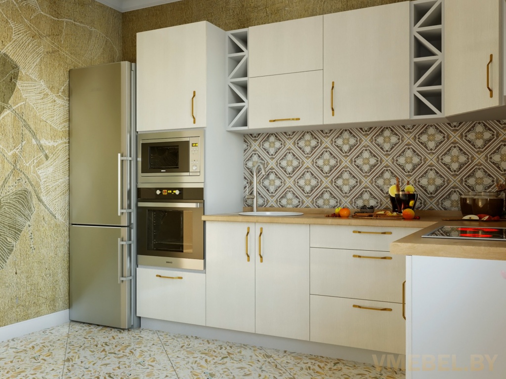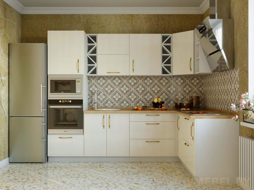 Основные Длина кухни: 260см+180см Конструкция кухни: линейная/угловая Материал каркаса: ЛДСП Эггер Белый базовый 18мм W908 SM Тип фасада: прямой Материал верхних фасадов: Egger файнлайн крем Материал нижних фасадов: Egger файнлайн крем Столешница: отдельная на каждый шкаф либо цельная на каждый участок Материал столешницы: Plattan (38 мм) 3259 Дуб французский (влагозащитная ДСП EGGER с каплеуловителем) Направляющие: шариковые направляющие полного выдвижения с доводчиками GTV Versalite Петли: Петля накладная с доводчиком GTV PRESTIGE Навесы: Крепление верхних ящиков к стене на регулируемые навесы на монтажную планку, монтажная планка в комплекте Крепление петель к боковине: на евровинтах Конструкция задней стенки: премиум (задняя стенка ящиков вставляется в фрезеруемый в паз) Цоколь: Белый H-100 L-3000 (4 заглушки, 1 угол внутренний) - 2 штуки Сушка: белая стандарт Ручка: UZ-FLAVIO -160 мм золото, база 160 мм (14 штук)