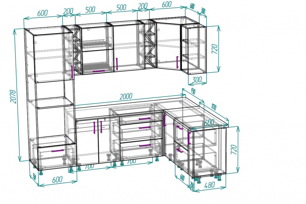 Высота верхних шкафов: 72 см